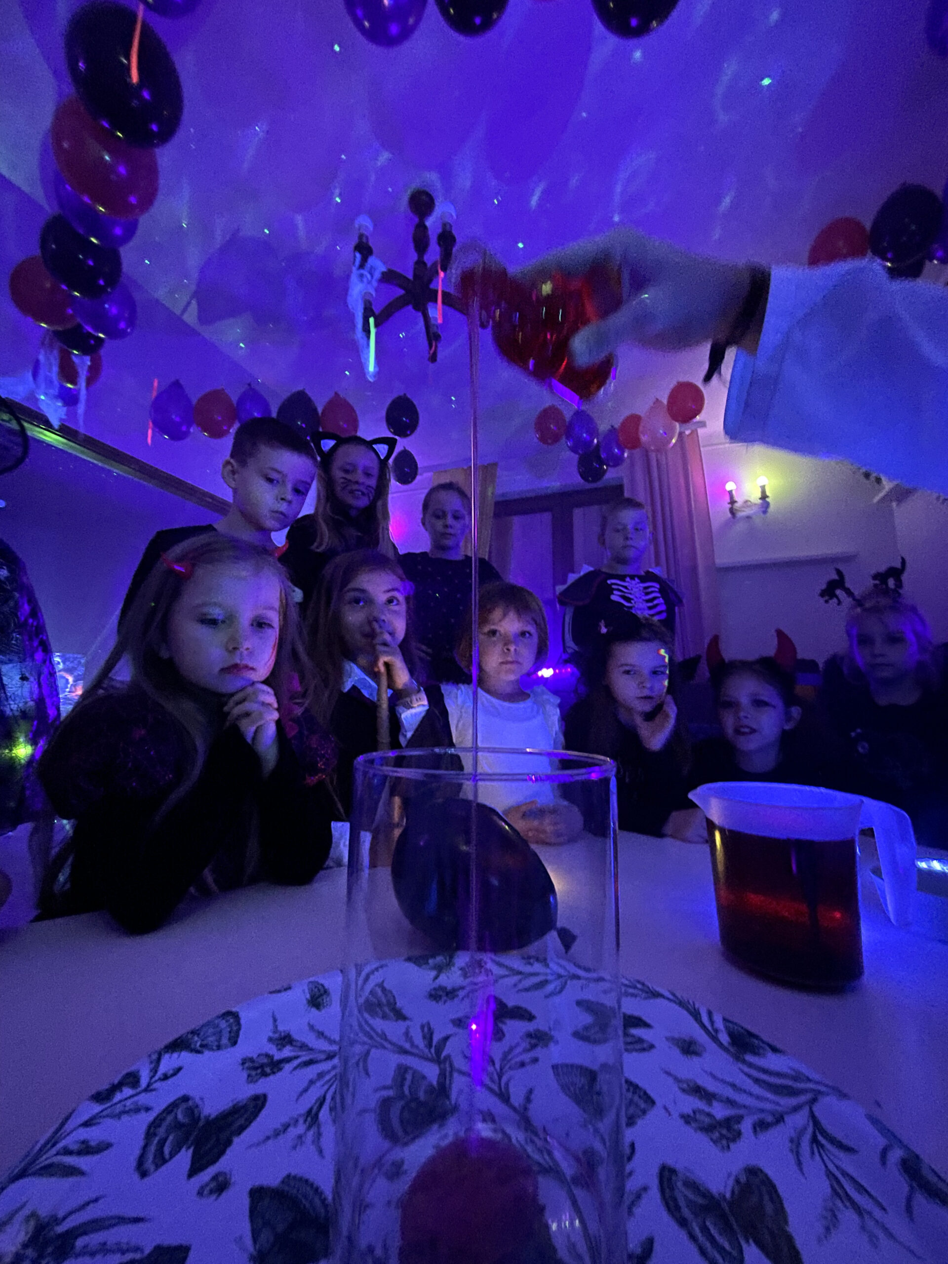 Na start – dekoracje, muzyka i światła przenoszą dzieci w klimat Halloween. Już od progu czuć dreszczyk emocji i zabawny strach!