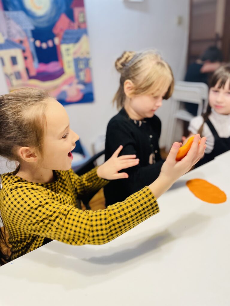 Każde warsztaty trwają 45 minut. Dzieci pracują w małych grupach, co pozwala prowadzącej poświęcić uwagę każdemu uczestnikowi. Każde dziecko otrzymuje pełen zestaw materiałów do pracy, a zajęcia mają jasno określoną strukturę – wstęp, część praktyczną i podsumowanie.
